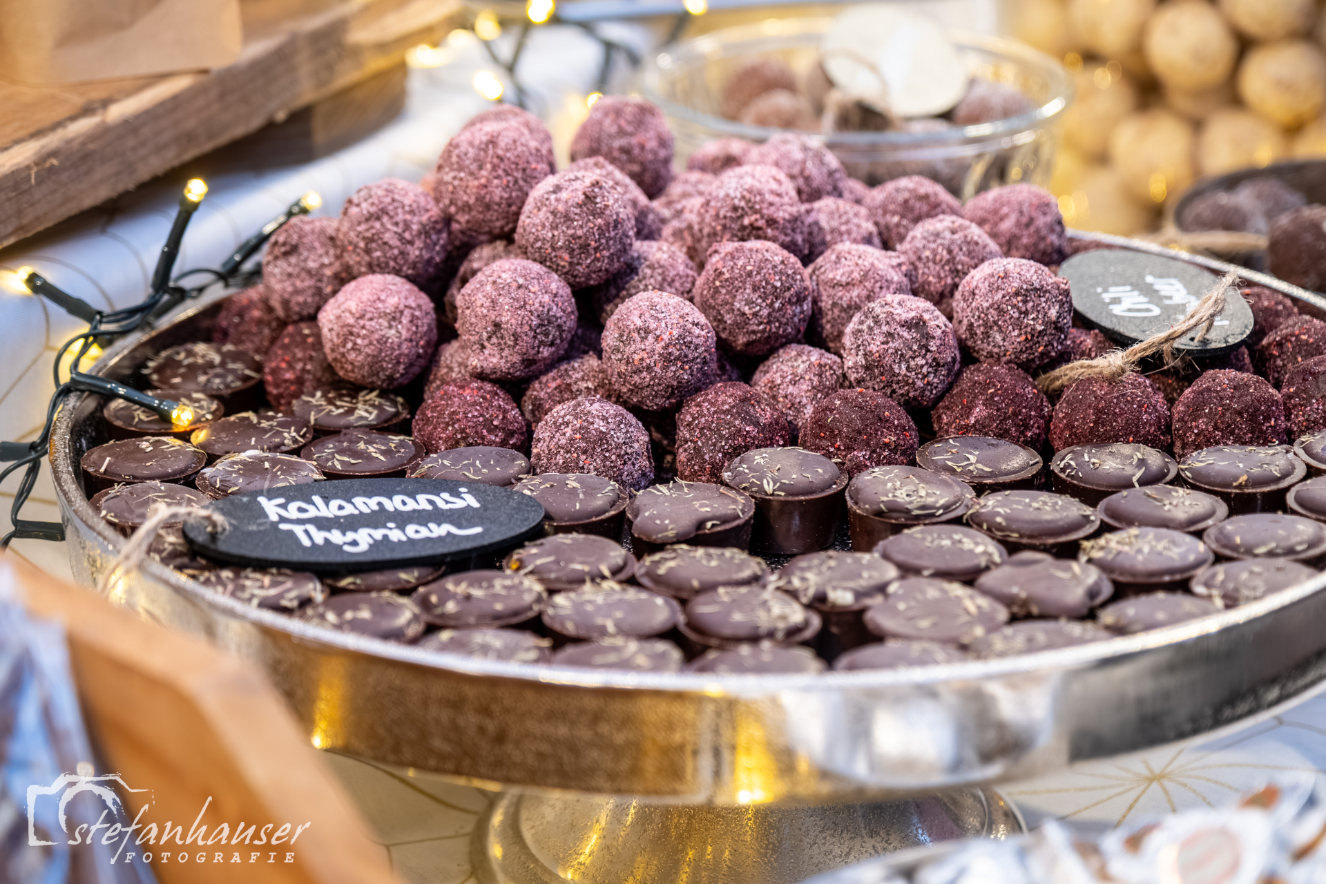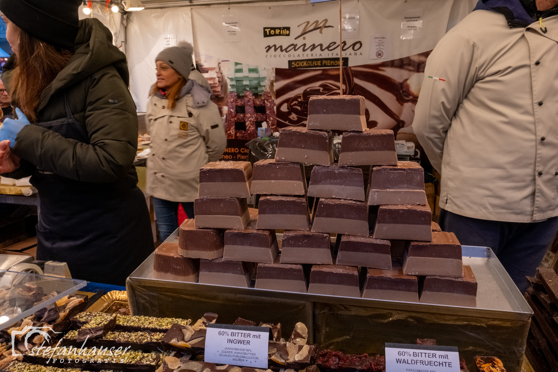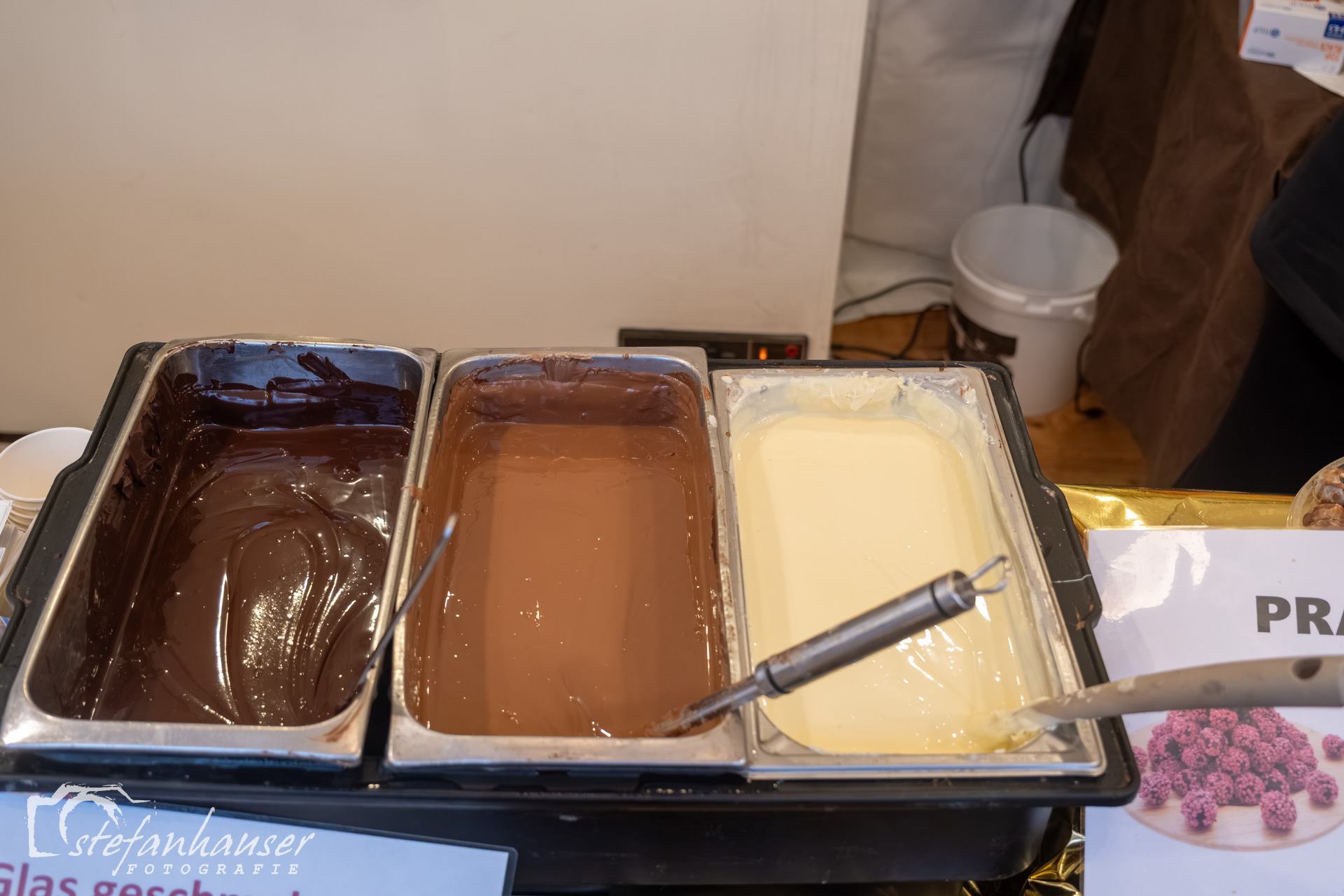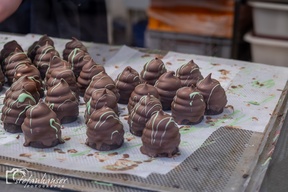 Es gibt Stände mit Angeboten rund um die Schokolade.