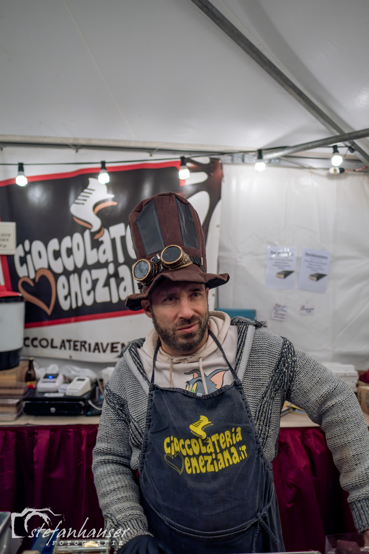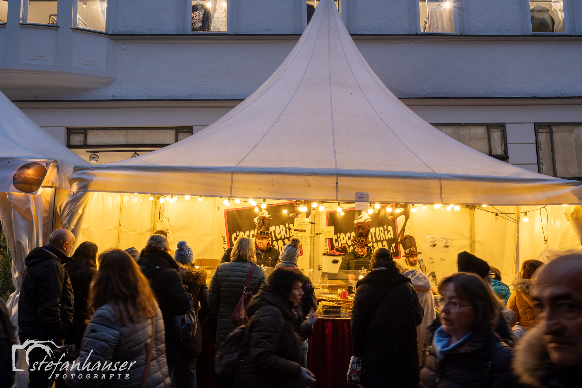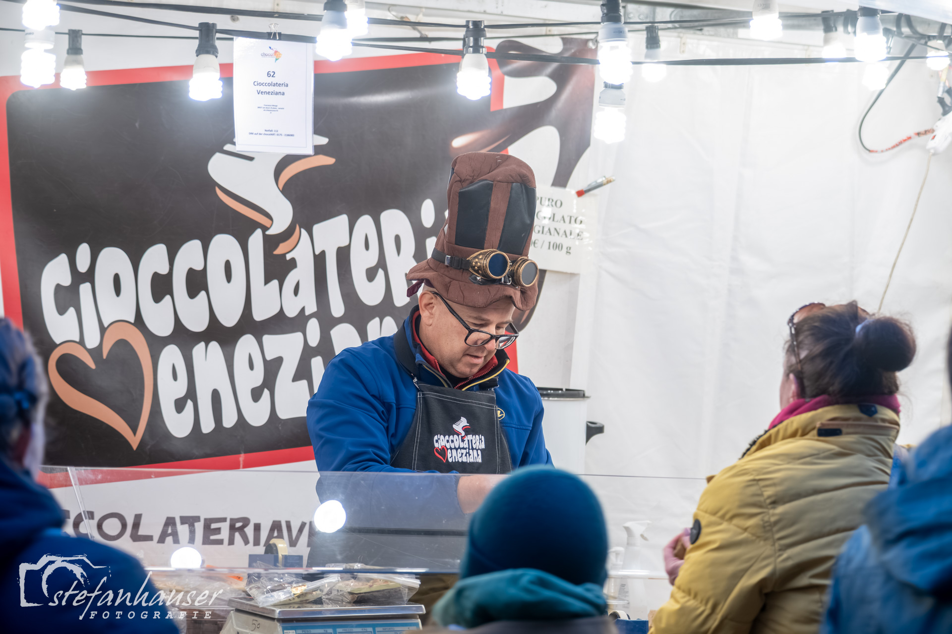 Es gibt Stände mit Angeboten rund um die Schokolade.